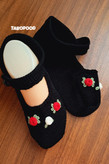 پاپوش طرح گل رز بافتنی تاروپود