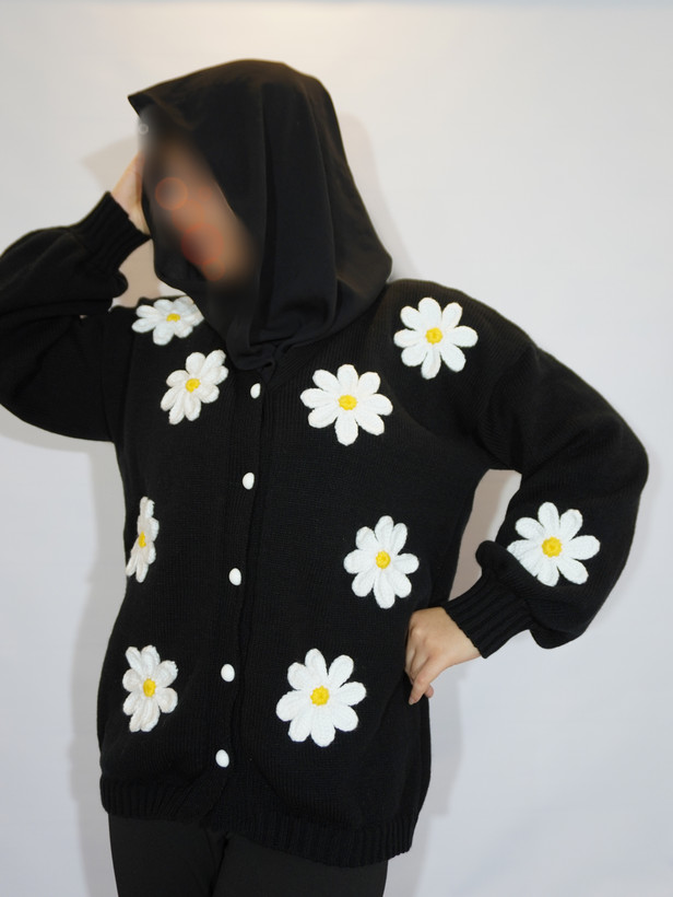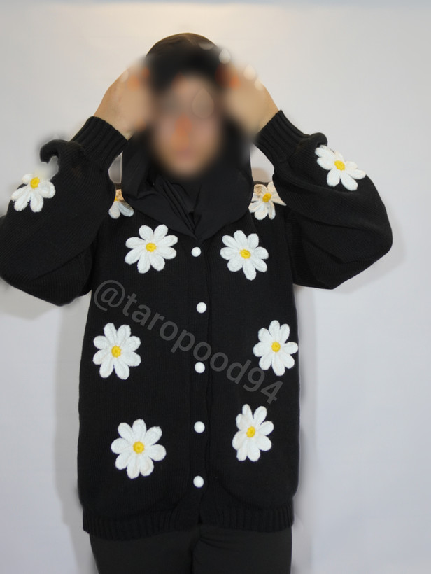 ژاکت بافت با نخ ترک و اپلیکه گل بابونه در هر قد وسایزی قابل بافت است .برای سفارشات دیگر واتساپ پیام بدین .
