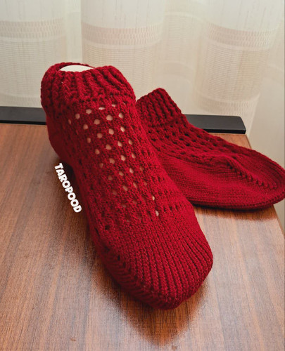 پاپوش طرح گل رز بافتنی تاروپود